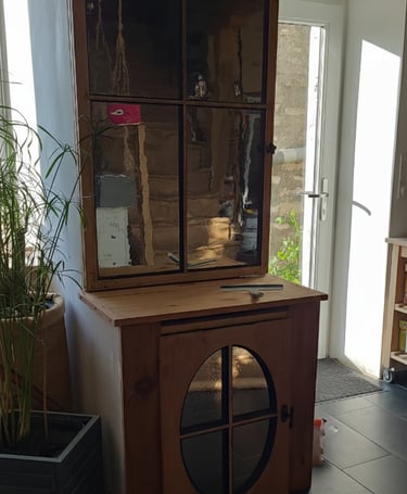 Le résultat final est un meuble élégant et authentique. Il dissimule non seulement l'indispensable tableau électrique, mais propose aussi des rangements pratiques et personnalisés. Les éléments vitrés récupérés apportent du caractère et une touche vintage, transformant un simple élément technique en une pièce maîtresse de la décoration intérieure. C'est l'exemple parfait d'une solution où l'ingéniosité du recyclage rencontre l'exigence esthétique pour créer un espace à la fois ordonné et plein de charme.